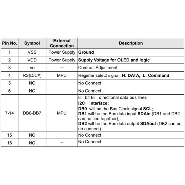 | Controller: | SSD1311 | Pin Number: | 16 Pins |
